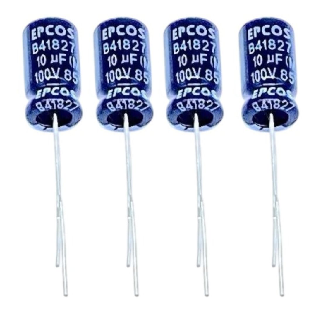 TAGS: capacitor eletrolítico 10uF, capacitor 10uF 100V, capacitor Epcos B41827, capacitor radial PTH, capacitor alumínio 100V, capacitor 85°C, capacitor 6x11mm, capacitor para fonte, capacitor para eletrônica, componente eletrônico PTH