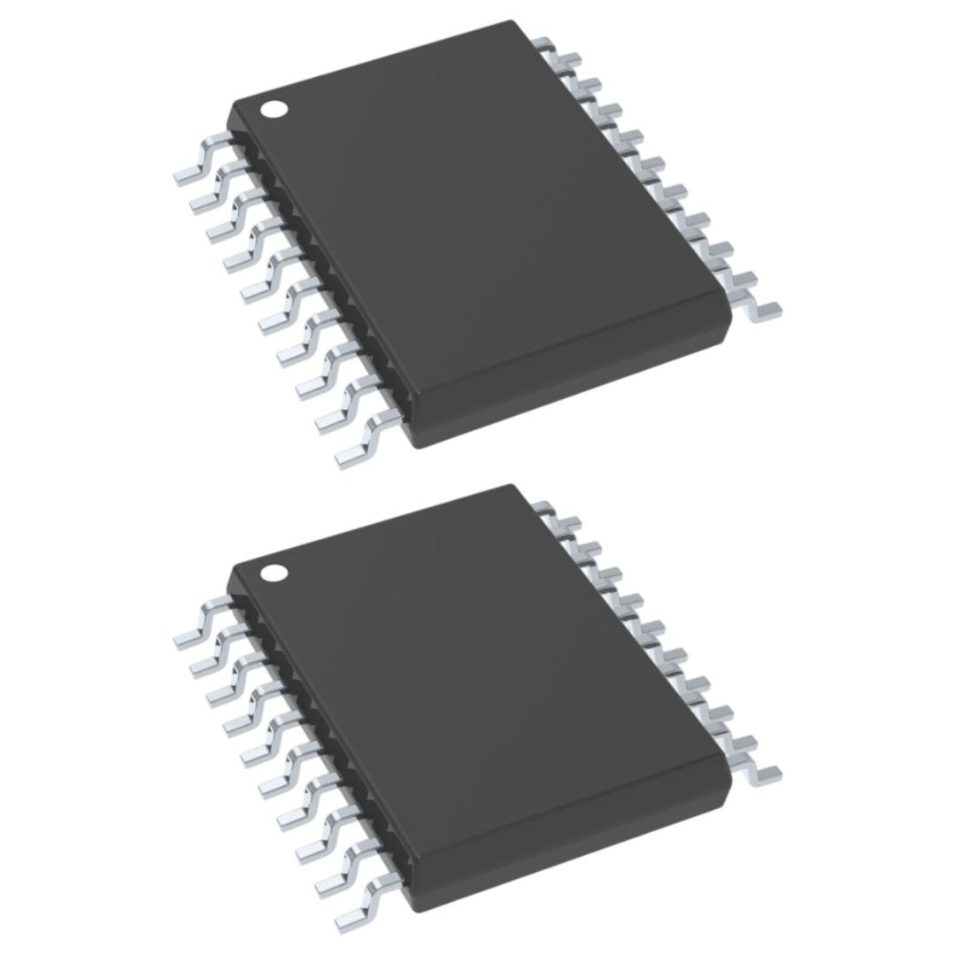 Fabricado no encapsulamento SOIC-20 SMD, garante fácil montagem em placas de circuito impresso (PCB), sendo ideal para projetos compactos e de alta densidade.
