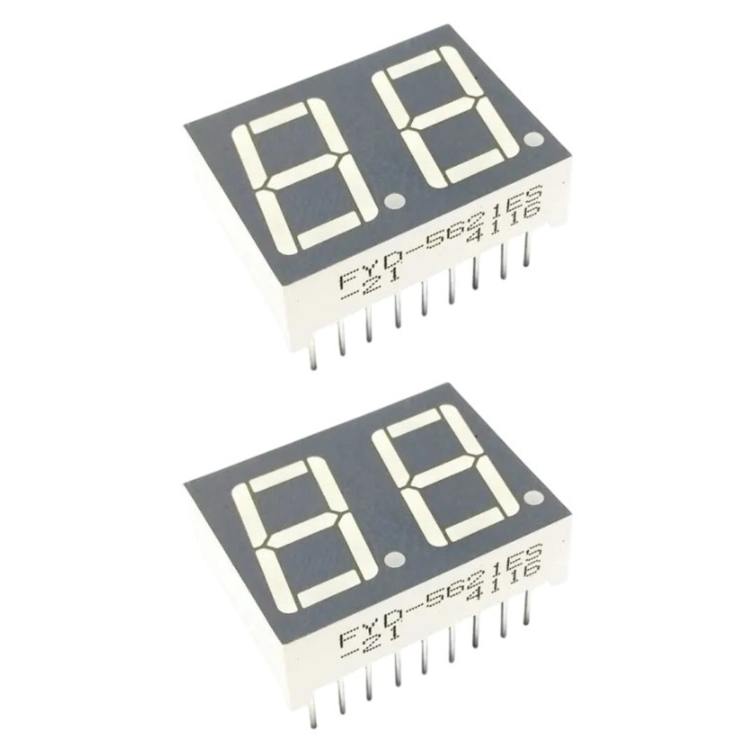 Display 7 segmentos duplo, display FYD-5621ES-21, display 2 dígitos vermelho, display catodo comum vermelho, display 7 segmentos vermelho, display eletrônico FORYARD, display digital FYD-5621ES-21, display LED 7 segmentos duplo vermelho, display contador digital, display para microcontrolador, display para Arduino, display numérico 2 dígitos, display vermelho 7 segmentos, display eletrônico vermelho 2 dígitos