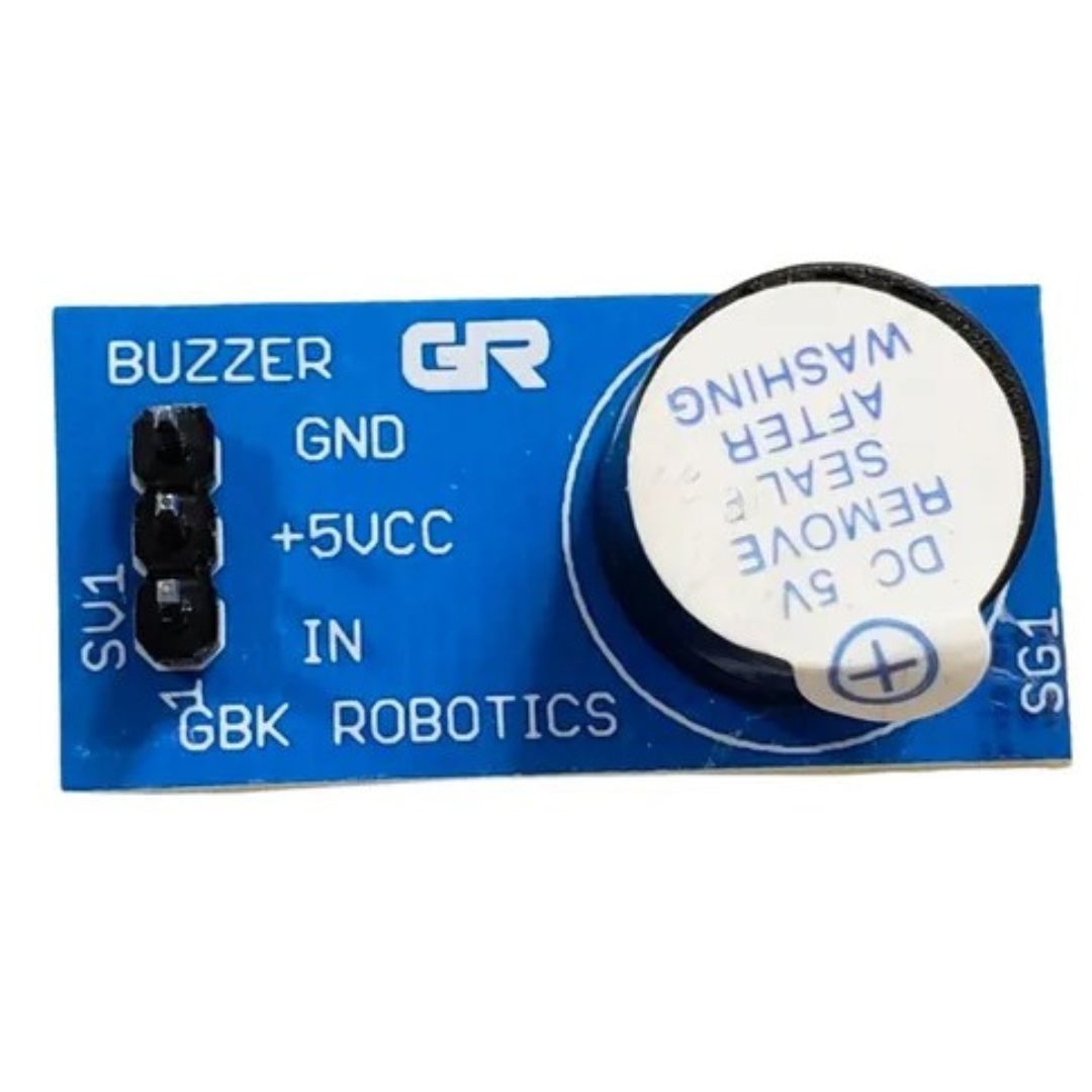 Módulo Buzzer Ativo 5V SG1 GBK Robotics com oscilador interno, acionamento direto sem PWM, ideal para Arduino e microcontroladores, indicado para alertas sonoros, sinalização acústica, robótica, automação e projetos eletrônicos educacionais.