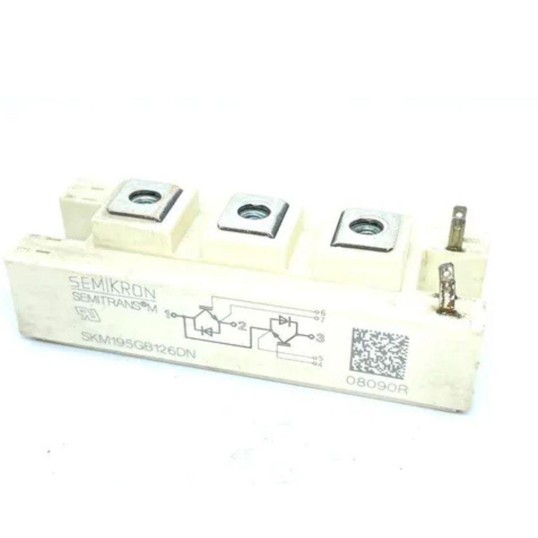 O SKM195GB126DN é um módulo IGBT de alta potência da SEMIKRON, desenvolvido para aplicações industriais que exigem elevada corrente, robustez elétrica e alta confiabilidade. Com tensão máxima de 1200V e corrente nominal de 195A, este módulo é amplamente utilizado em inversores de frequência, acionamentos de motores, fontes industriais e sistemas de conversão de energia.