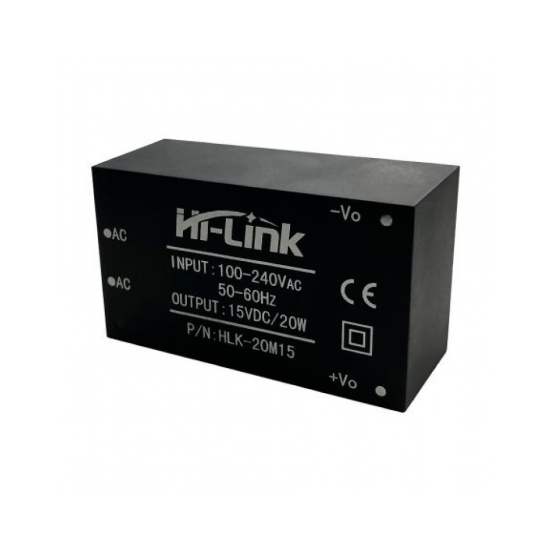 O Hi-Link HLK-20M15 é um módulo conversor AC/DC isolado de alta confiabilidade, projetado para fornecer saída estável de 15V / 1.3A, totalizando 20W de potência. Compacto, eficiente e seguro, ele é ideal para projetos profissionais, aplicações industriais, automação e produtos comerciais que necessitam de uma fonte AC/DC integrada diretamente na PCB.