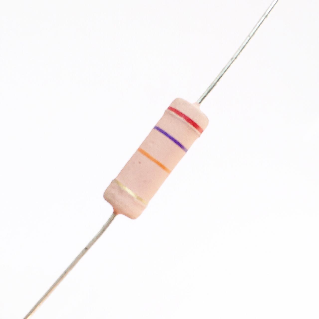 resistor 27k 5w, resistor axial 27k ohms, resistor 5w 27kΩ, resistor filme óxido metálico, resistor potência alta, resistor THT 5W, resistor eletrônico 27k, componente eletrônico resistor axial