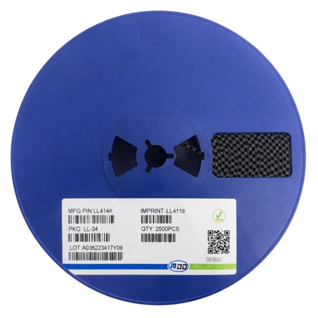 O diodo LL4148 (1N4148) SMD da MDD é um componente eletrônico amplamente utilizado em circuitos de comutação rápida, proteção de sinais e aplicações de alta frequência. Fabricado no encapsulamento SOD-80 (MiniMELF), oferece excelente desempenho elétrico, confiabilidade e estabilidade térmica, sendo ideal para projetos de eletrônica profissional, industrial, automação, telecomunicações e manutenção de placas eletrônicas.