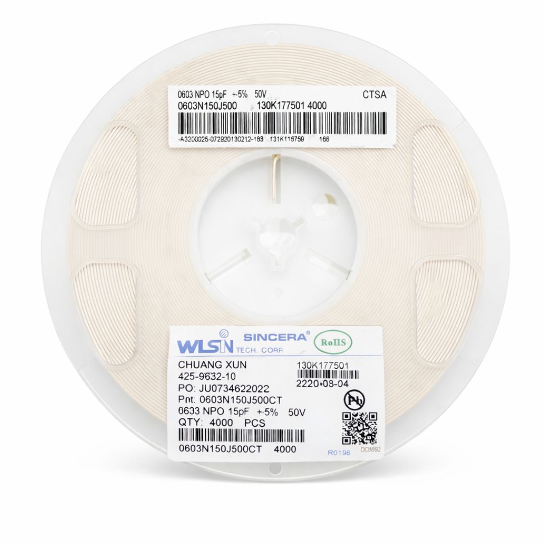 Rolo 4.000 Peças - Capacitor Cerâmico Multicamadas SMD 15PF 50V 0603 (0603N150J500CT) 5%