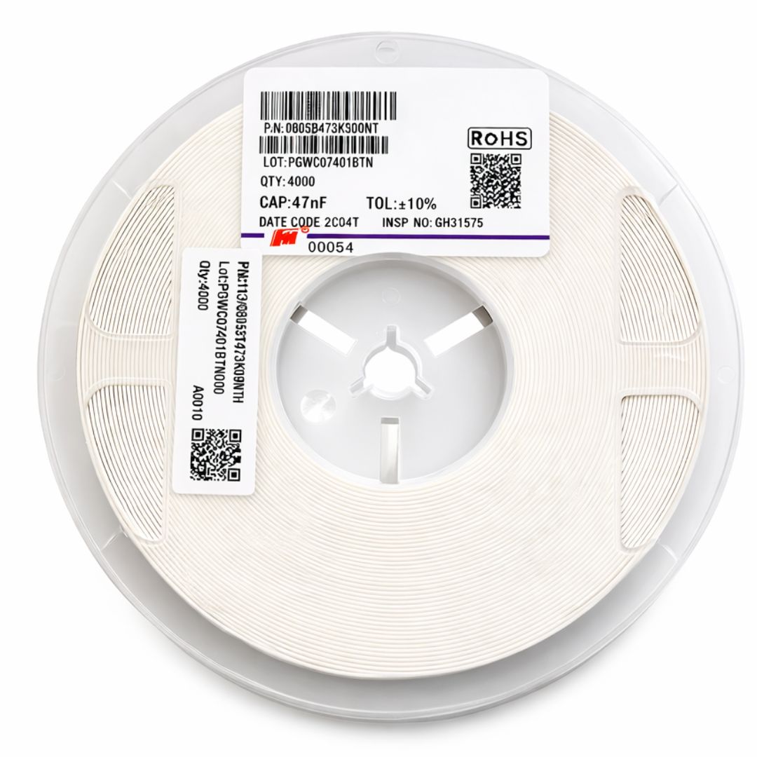 O capacitor cerâmico multicamadas SMD 47nF 50V X7R 0805 (0805B473K500NT) da Fenghua é um componente eletrônico amplamente utilizado em circuitos de filtragem, desacoplamento, acoplamento de sinais e estabilização de tensão em placas eletrônicas.