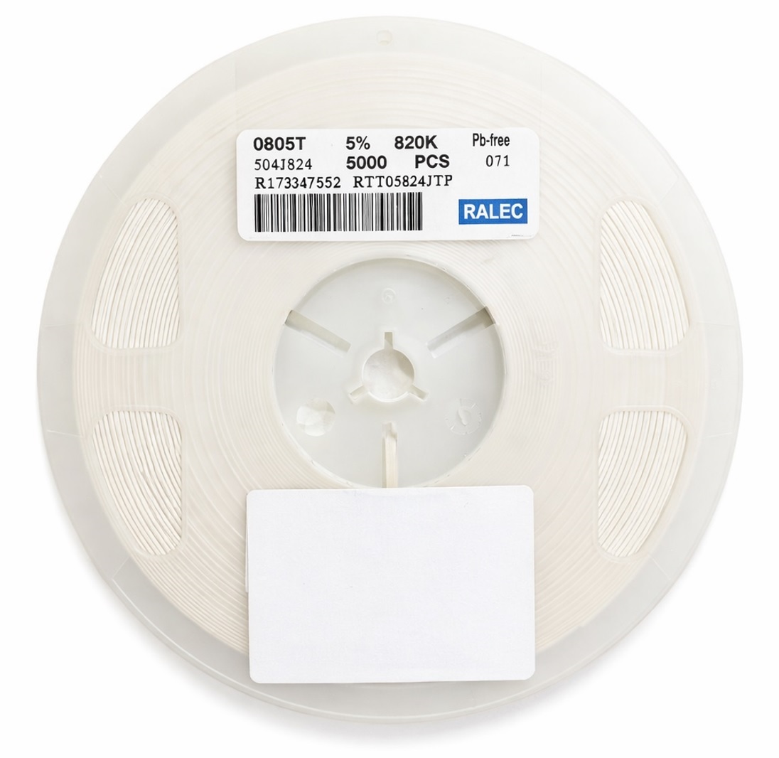 resistor 820k smd 0805, RTT05824JTP, resistor chip 820k ohms, resistor 1/8w smd, resistor 5 por cento, resistor ralec, resistor 0805 820k, componente smd eletrônico, resistor para pcb, resistor montagem smd, resistor 820k 0.125w, resistor eletrônico smd, rolo resistor 5000 peças, resistor alta resistência smd, resistor 820k ralec