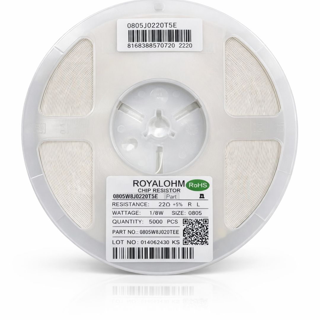 Resistor SMD 22Ω (22R) 0805 1/8W ±5% – 0805W8J0220T5E | Royalohm