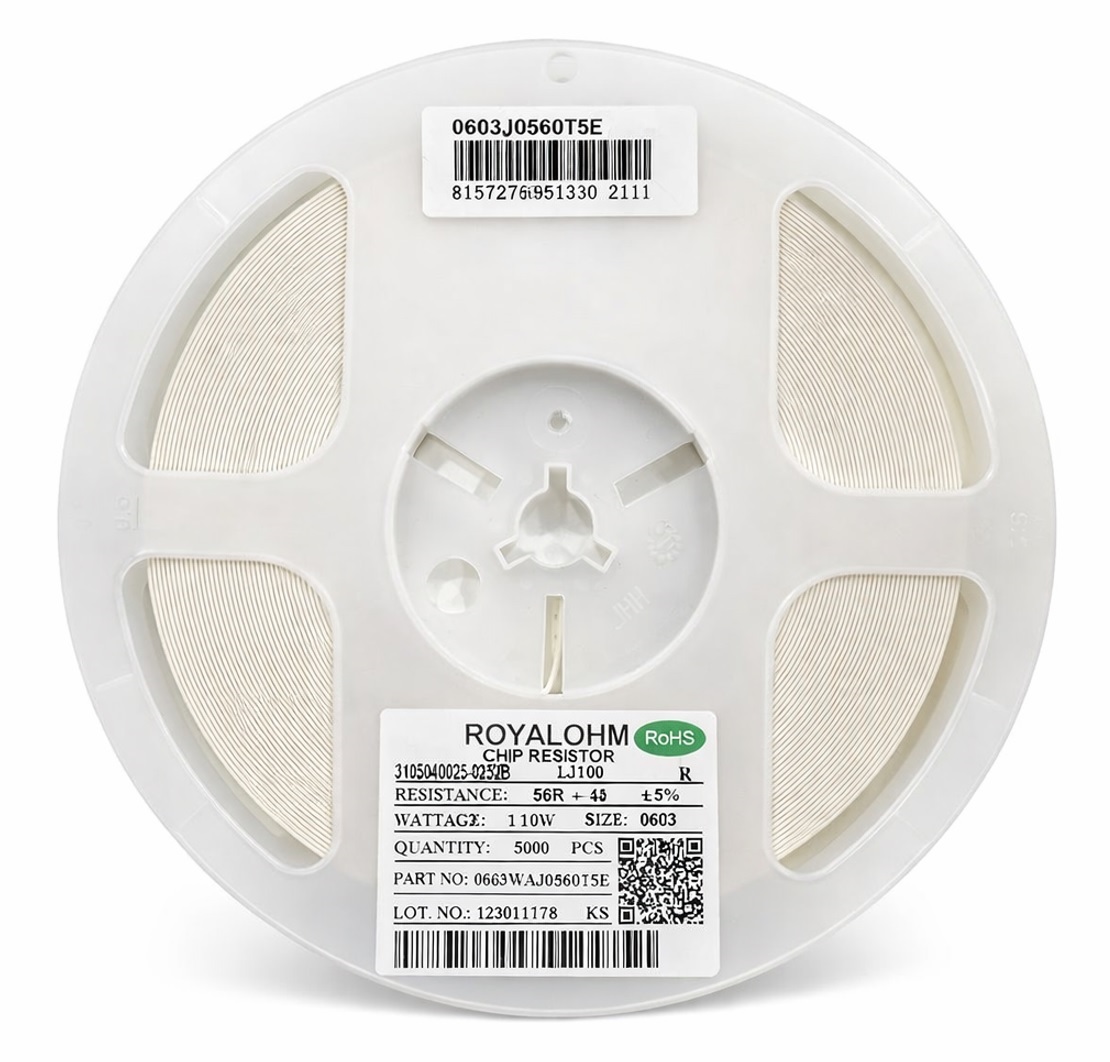 1 Rolo com 5.000 Resistores SMD 56R 0603 Royalohm