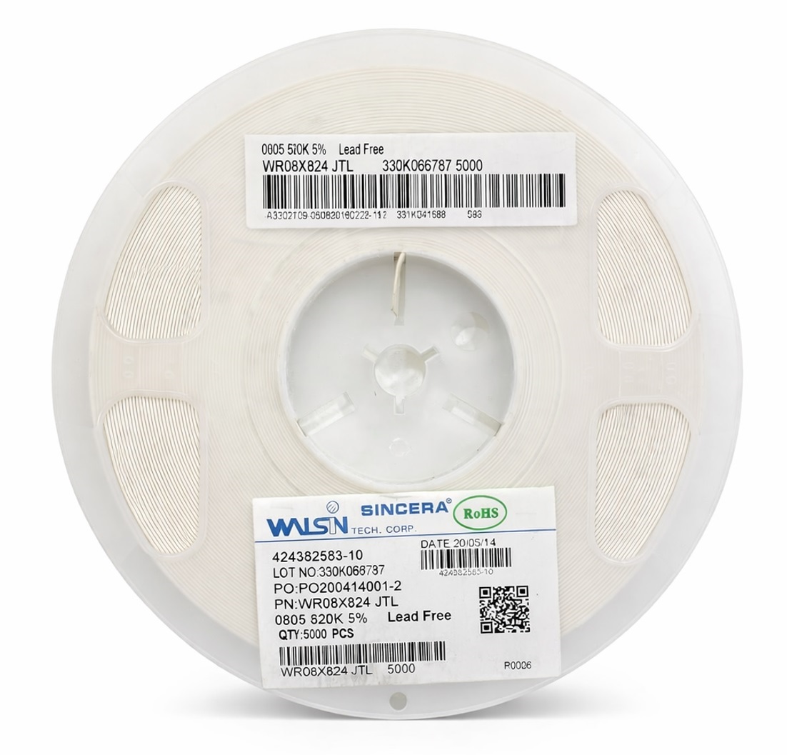 O Resistor SMD 820KΩ 0805 1/8W WR08X824 JTL 5% da Walsin é a escolha ideal para aplicações eletrônicas que exigem estabilidade, precisão e alta confiabilidade. Fornecido em rolo com 5.000 peças, é perfeito para linhas de produção, manutenção eletrônica e projetos profissionais com montagem em superfície (SMD).