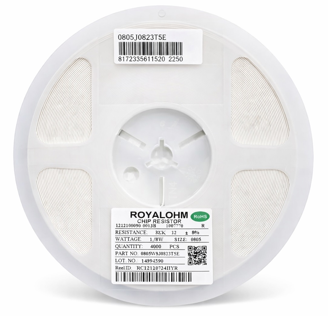O resistor SMD 82KΩ 0805 1/8W da ROYALOHM, código 0805WJ0823T5E, é um componente eletrônico de alta confiabilidade amplamente utilizado em projetos de eletrônica, automação, reparo de placas, montagem SMT e produção industrial.