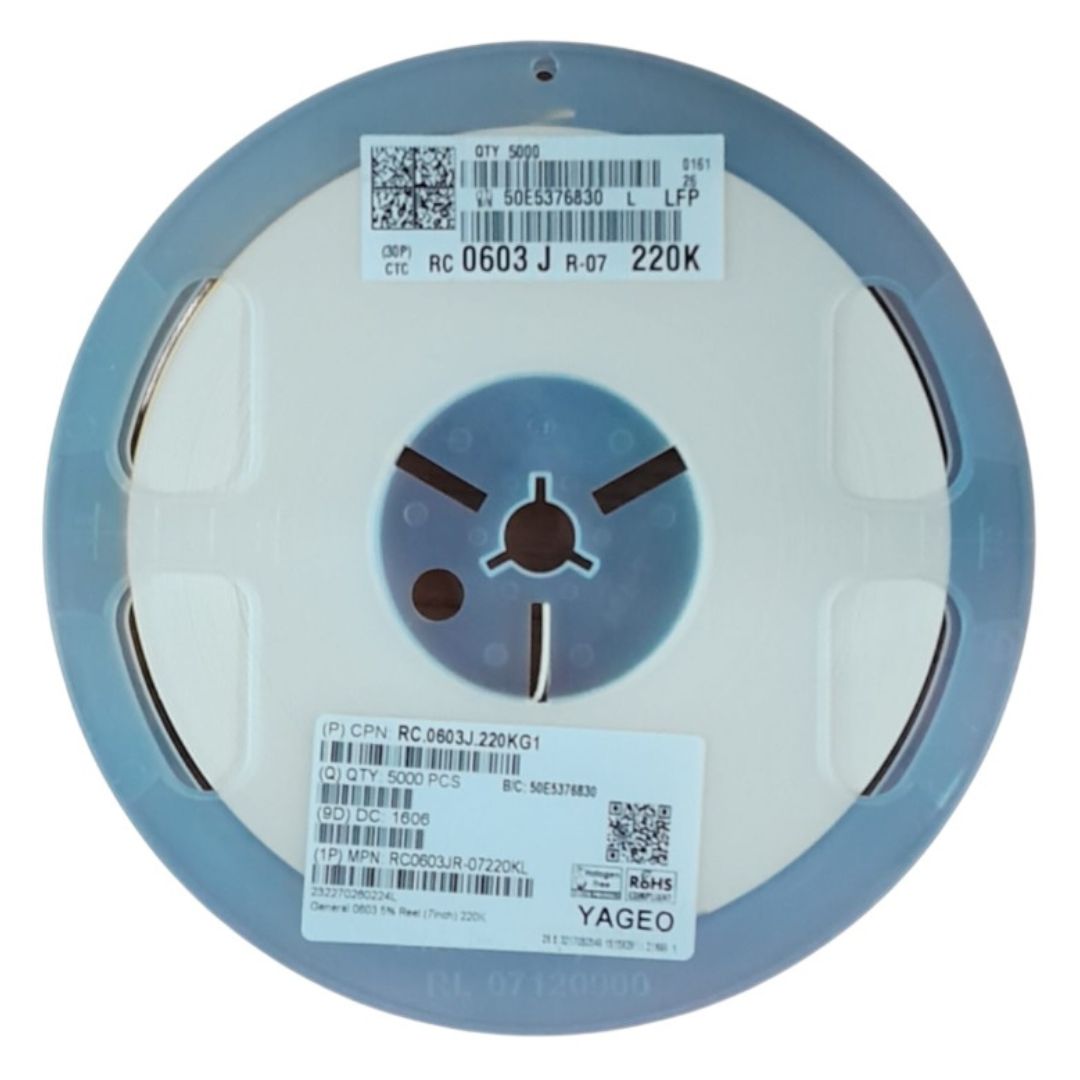 Descrição Otimizada para Loja Virtual e SEO - Rolo 5.000 Peças Resistor SMD 220K 0603 (RC0603JR-07220KL) 5% YAGEO