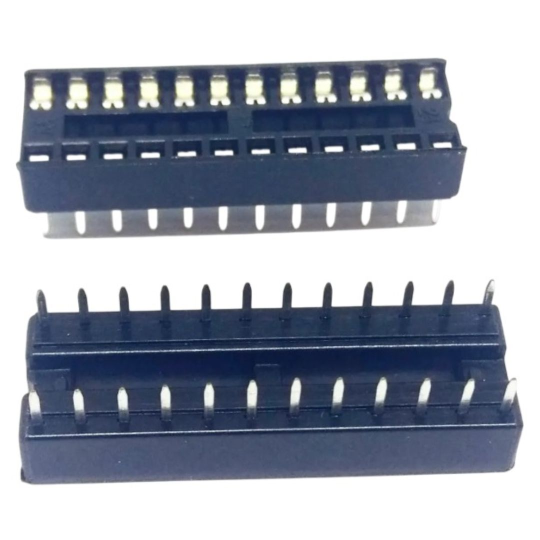 O Soquete DIP 24 Pinos MAC24 da Kaifeng Electronics é a solução ideal para montagem segura e prática de circuitos integrados (CI) em placas eletrônicas. Com estrutura estampada (stamped), oferece excelente custo-benefício aliado a boa condutividade elétrica e fixação estável.